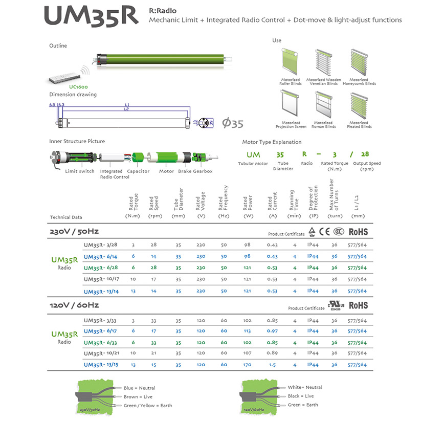 R:Radio/ Mechanic Limit+Integrated radio control+jogging & tilt