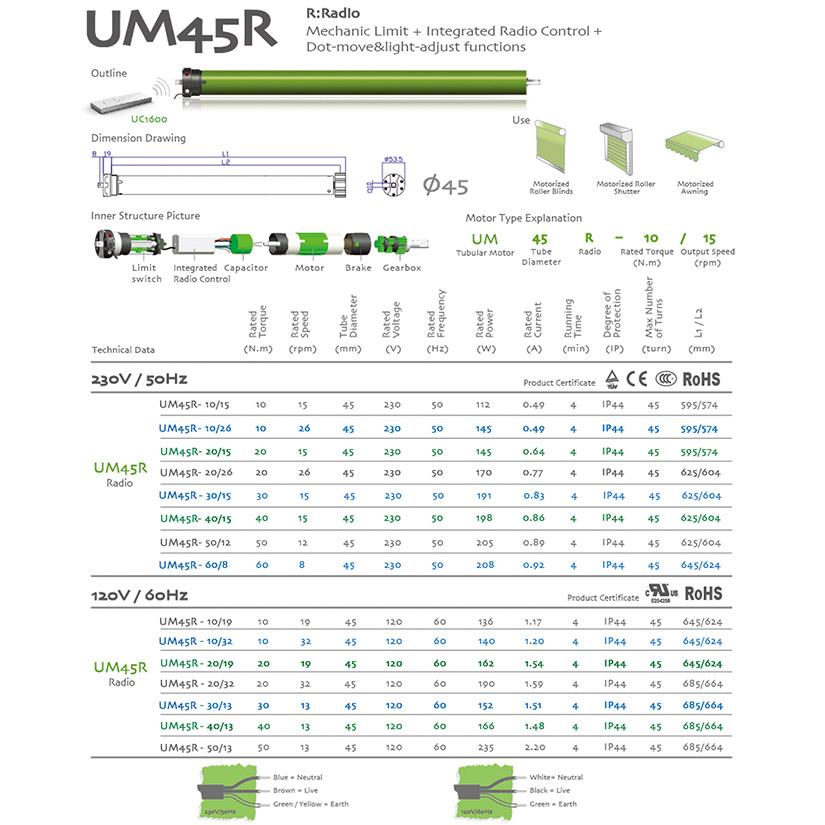 R:Radio/ Mechanic Limit+Integrated radio control+jogging & tilt