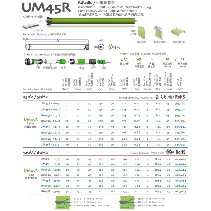R:Radio/內(nèi)置接收型 Mechanic Limit+Integrated radio control+jogging & tilt/機械行程限位+內(nèi)置接收器+點動調(diào)光功能
