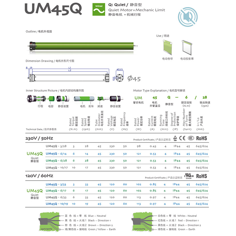 Q:Quiet/靜音型 Quiet Device+Mechanic Limit/靜音電機+機械行程